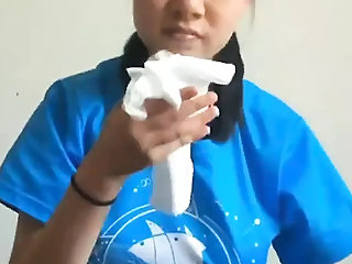 "Chinese girl (20yo) makes pink pussy and big clit wet"