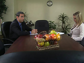 "Eating out her super seductive blonde colleagues pussy just so she feels better"